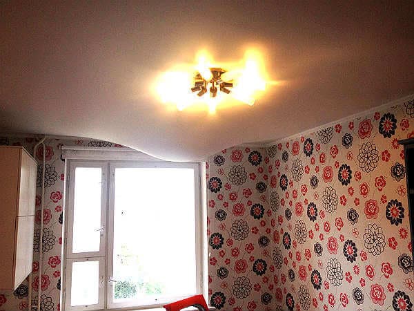 Снимаем люстру или светильник, находящийся максимально близко к пузырю. Иногда создаются цельные потолки с боковым освещением. В этом случае под снимается полотно натяжного потолка для слива жидкости.